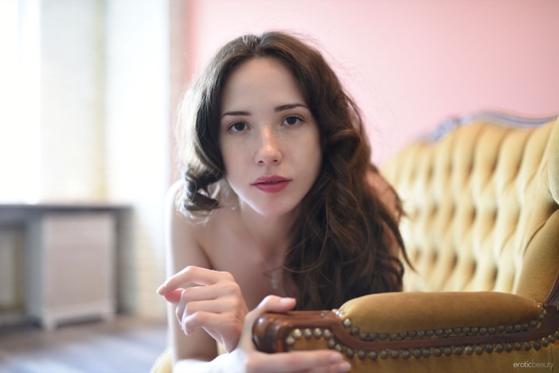 Страстно сорвав с себя всю одежду, голая девка горячо позирует на диване, возбужденно извиваясь всем телом. Бесстыже выставив на показ все свои голые прелести, молодая простушка с аккуратными титьками игриво флиртует на камеру и засвечивает бритую промежность с маленькой писькой.