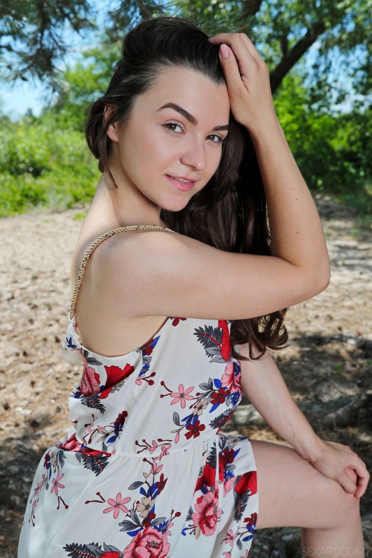 Возбуждающе флиртуя на камеру, развратная девица в летнем платье без белья эротично оголила свое сексуальное горячее тело на природе. Обнаженная брюнетка с натуральными упругими сиськами ложится прямо на землю и, встав в позу раком, похотливо выпячивает крупным планом свою голую задницу и бритой розовой пиздой.