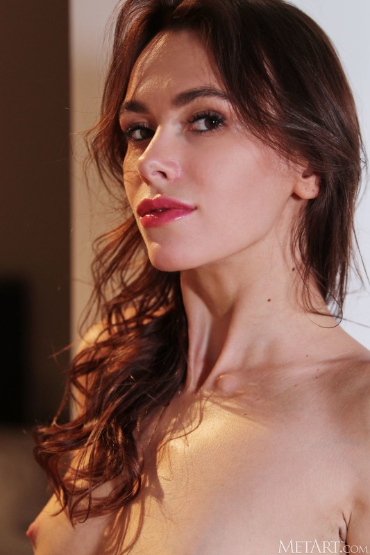 Возбуждающе медленно стянув с себя обтягивающее тело боди, худенькая голая брюнетка в белых гольфах развратно позирует на полу. Бесстыже выставляя на показ перед камерой свои самые интимные места, длинноногая телка с миниатюрными титьками похотливо выпячивает то аппетитную маленькую задницу, то полностью раскрывает бритую промежность с сочной жадной пиздой.