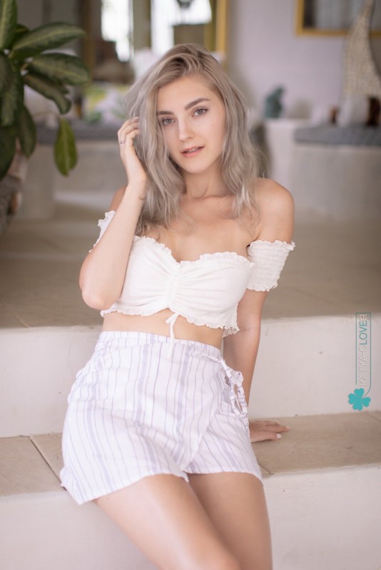 Красиво позируя перед камерой на лестнице, воздушная нежная нимфа возбуждающе медленно сняла всю одежду и полностью оголила свою большую упругую грудь. Сексуальная блондинка с шикарными формами чувственно извивается всем телом, мельком засвечивая между ножек гладкую сладкую киску.