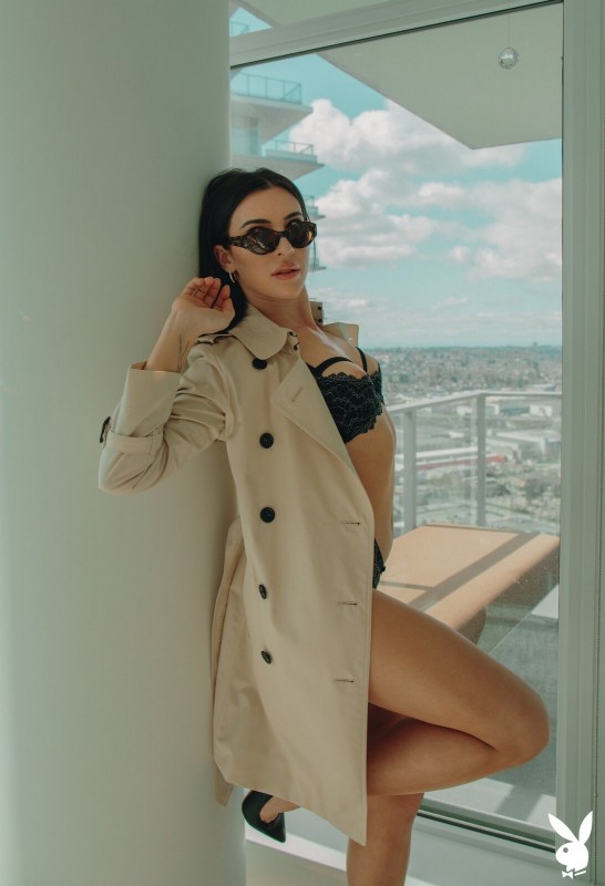 Распахнув перед камерой плащ, жгучая брюнетка осталась лишь в кружевном нижнем белье и бесстыже оголила свои маленькие титьки с пухлыми розовыми сосками. Раздевшись до гола, сексуальная баба страстно извивается всем телом и выставляет на показ перед камерой свои возбуждающие голые прелести.