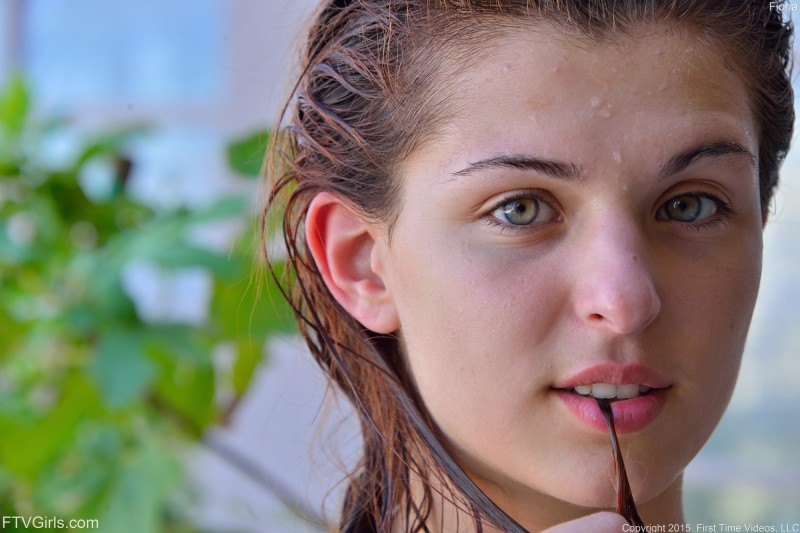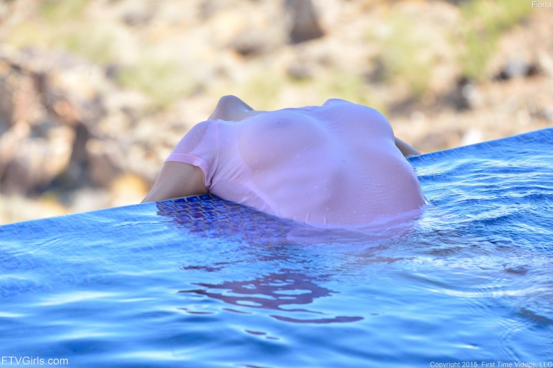 Решив немного охладиться в жаркую душную погоду, горячая развратная сучка без трусов решила поплавать в бассейне и полностью намочила свою футболку. Затем раздевшись до гола, мокрая телка с упругими сиськами позирует перед камерой обнаженной и с разных ракурсов показывает нам свою аппетитную попочку с бритой писькой.