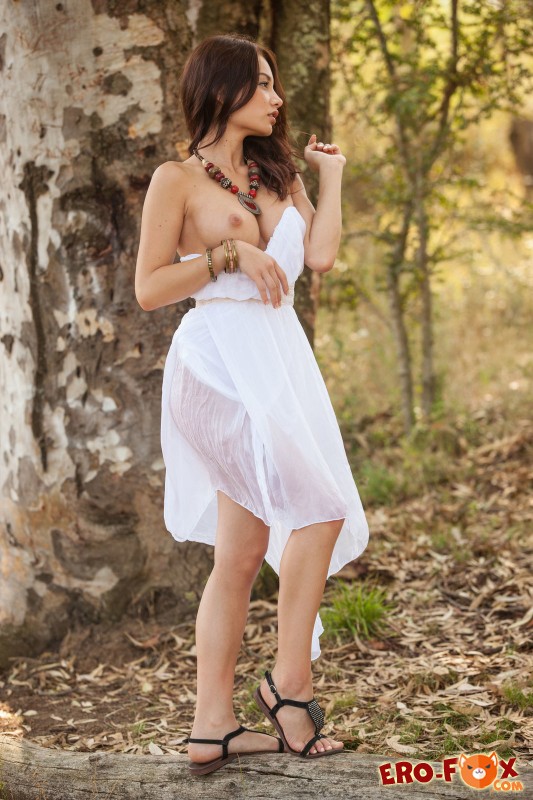 Обворожительная голая девушка позирует в лесу, где широко раздвигает стройные ноги и показывает нам бритую письку во всей красе. так же девушка не стесняется продемонстрировать нам свою упругую попку, пока стоит раком на земле. Помимо всего прочего, у милашки шикарные упругие сиськи, от которых невероятно сложно оторвать взгляд...