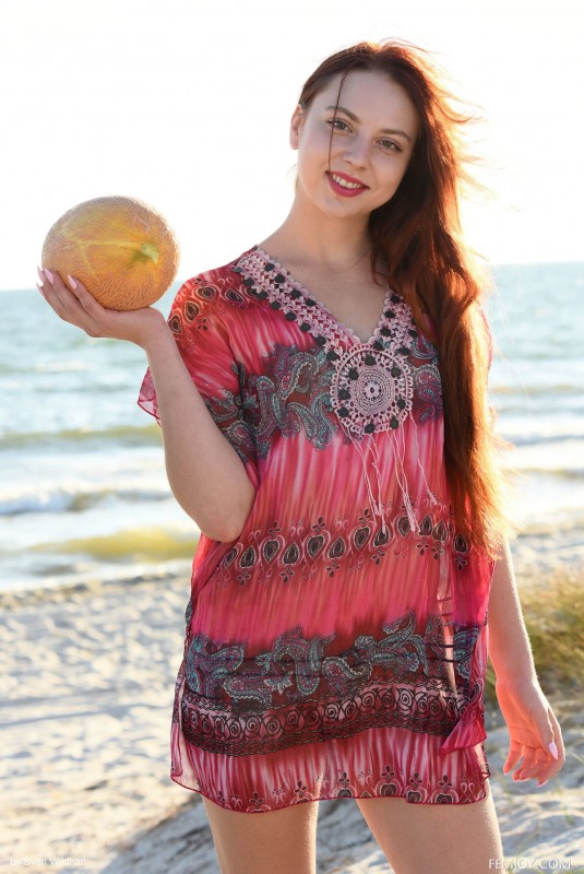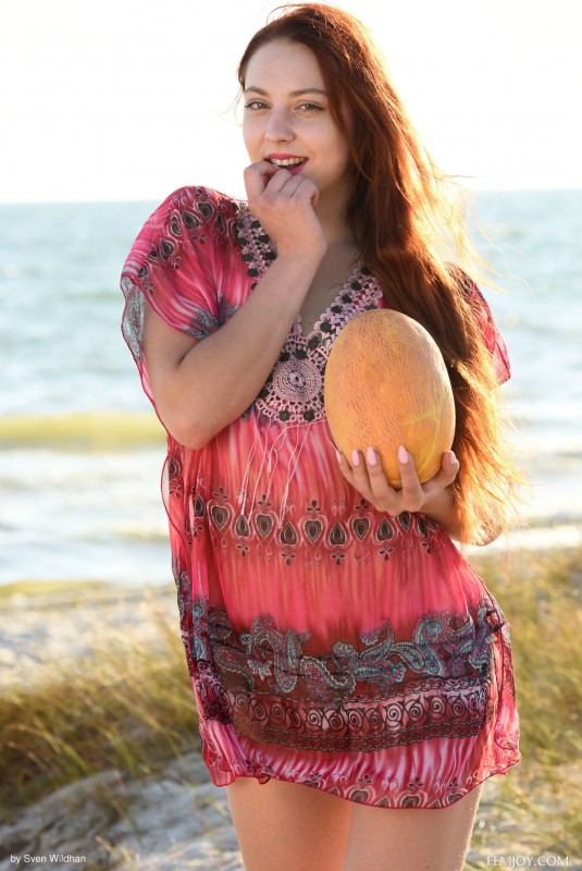 Эротика » Голые девушки » Сочная рыжуха позирует голышом на пляже