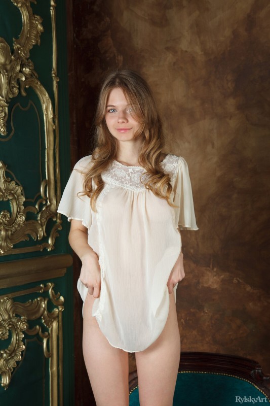 Игриво стянув с себя легкую кофточку, голая русая детка без стеснения позирует перед камерой и во всей красе демонстрирует свои соблазнительные прелести. Выставив на показ красивую упругую грудь, молодая девушка с сексуальной фигуркой с разных ракурсов интригующе засвечивает свой волосатый лобок с бритой маленькой киской.
