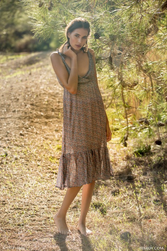 Кокетливо стяну с себя легкое платье, изящная красивая девушка разделась до гола на природе и начала эротично позировать перед камерой. Ничего не скрывая от нас, стройная барышня с маленькой грудью соблазнительно виляет своими стройными бедрами и интригующе засвечивает свою бритую аккуратную писечку.