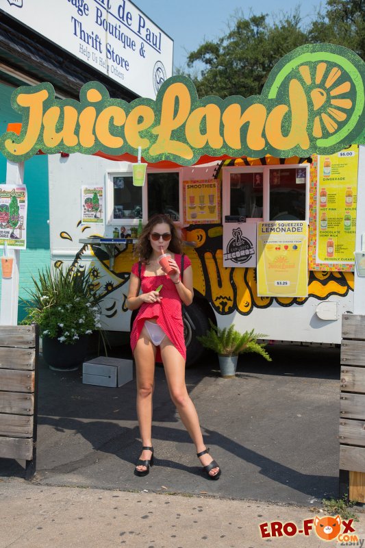 Озорная девушка устроила себе выходной в парке развлечений, но она не может обойтись без разврата и там девушка показывает белые трусики под юбкой которую красавица периодически задирает перед фото камерой в руках у подруги. Милашка знает как возбудить интерес к своей персоне и с лёгкостью это делает заигрывая с нами через камеру. А в завершение прогулки девушка покажет голые сиськи, но так и не снимет трусики.