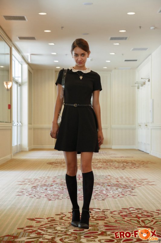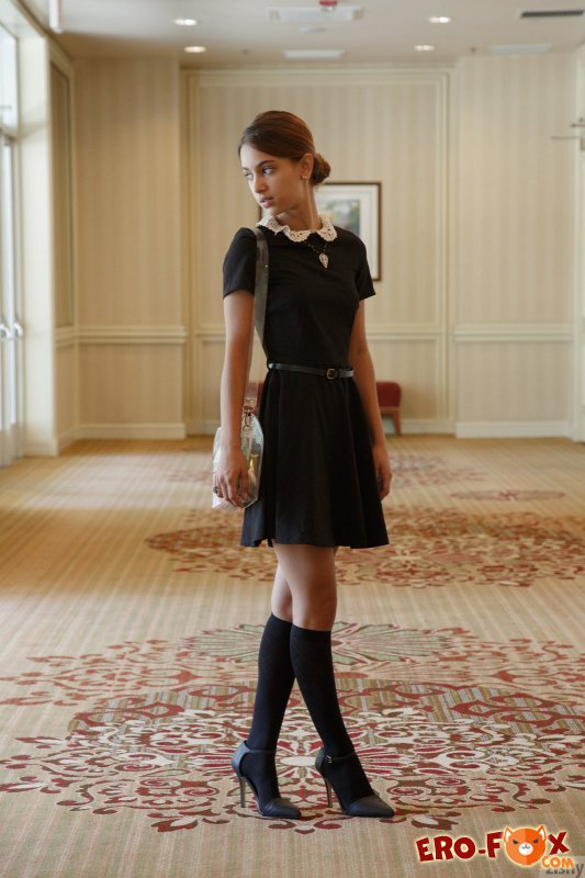 Милая девушка в коротком чёрном платье задирает подол и показывает возбуждающие трусики. В процессе всей фото съёмки девушка то и дело задирает свою юбочку что бы соблазнительным образом продемонстрировать трусики которые скрываются у неё под платьем. И надо сказать, что красавица действительно очень сильно возбуждает и ей даже не обязательно раздеваться что бы сводить с ума миллионы мужчин...