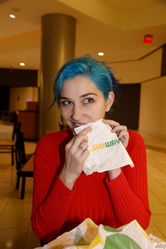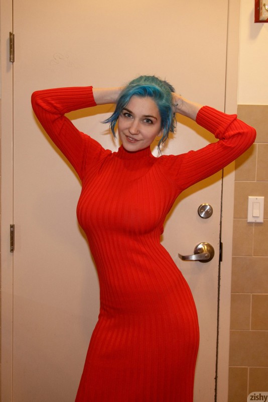 Привлекательная молодая девушка с голубыми волосами в длинном облегающем платье прогуливается по торговому центру, а заходя в туалет с радостью задирает юбку и засвечивает трусики под которыми скрывается её изголодавшаяся по сексу киска. От всего происходящего с ней, распутная сучка испытывала приятное возбуждение и удовольствие.