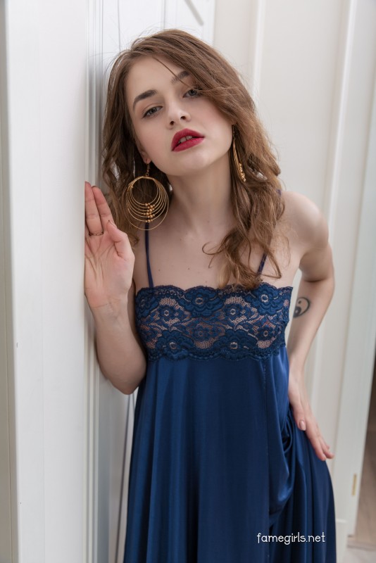Высоко задирая шелковую ночнушку без нижнего белья, распутная молодая девица любуется своим худым телом в большом зеркале. Страстно прижимаясь к нему голыми миниатюрными прелестями, обнаженная девка крупным планом выпячивает к нам свою аккуратную упругую жопку и, раздвинув руками булки, демонстрирует бритую тёмную промежность.