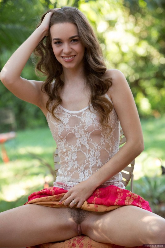 Симпатичная девица без трусов игриво задрала перед камерой свою длинную юбку и открыто показала во всей красе подстриженный волосатый лобок. Затем широко раздвинув ножки, русая девушка с миниатюрными упругими титечками крупным планом тычется своей бритой пиздёнкой с влажной сладкой щелочкой.