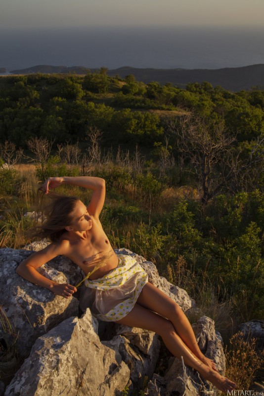 Игриво стянув с себя трусы и высоко задрав короткую юбку, молодая худая девица расселась перед камерой с широко раздвинутыми ногами и открыто показала всем свою заросшую волосатую промежность. Оголив миниатюрные упругие титечки, обнаженная девушка наслаждается лучами заходящего солнца и во всех подробностях демонстрирует мохнатую пилотку.
