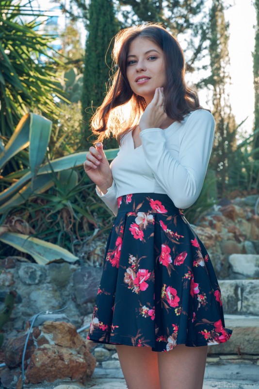 Виляя перед камерой красивой упругой попкой, игривая девица показала свои розовые трусики под юбкой, а затем и вовсе разделась до гола. Развратно позируя обнаженной в общественном парке, молодая телочка с натуральными сиськами нежно ласкает руками свои самые чувствительные местечки и нетерпеливо подставляет как можно ближе раскрытую бритую промежность.