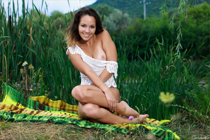 Игриво позируя перед камерой без трусиков, симпатичная девица с миниатюрными сиськами оголила на природе свое стройное молодое тело и спряталась в высокой траве. Чувствуя себя самой привлекательной и желанной, милая детка охотно раздвигает перед нами ноги и похотливо виляет задницей, во всей красе демонстрируя свою голую бритую пиздёнку.