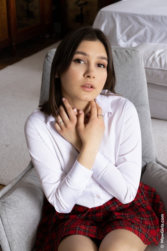 Игриво зажимаясь и позируя перед камерой, очаровательная милашка в мини юбке интригующе приподняла ее и засветила там белые трусики. Постепенно сняв с себя одежду, молодая шалунья с миниатюрными сиськами развратно прогнулась раком в кресле и принялась нетерпеливо тыкаться в камеру своей сочной мясистой пиздой.