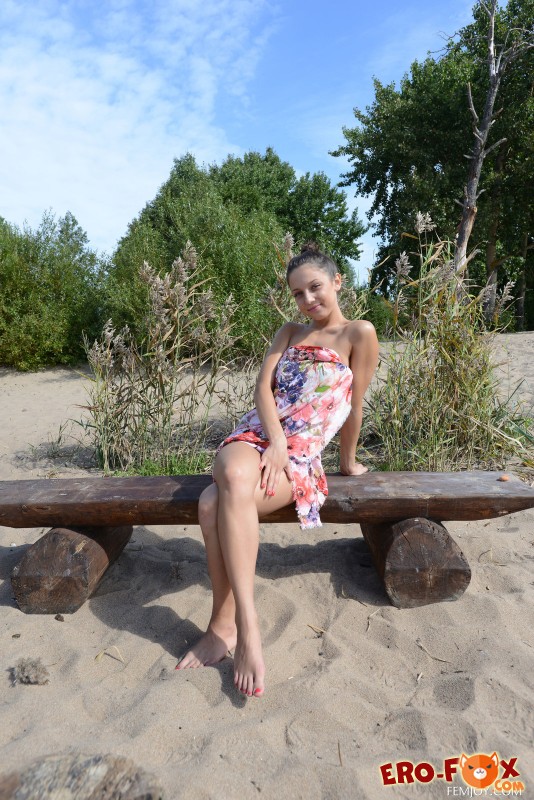 Чья-то соблазнительная и молодая жена отдыхает голая на песчаном пляже. А в это время муж делает замечательные снимки обнажённой девушки в самых откровенных позах. Красотка с лёгкостью демонстрирует свою голую попку, бритую письку и шикарную упругую грудь среднего размера. Она не стесняется нагибаться раком, широко раздвигает ноги и ведёт себя очень раскованно.