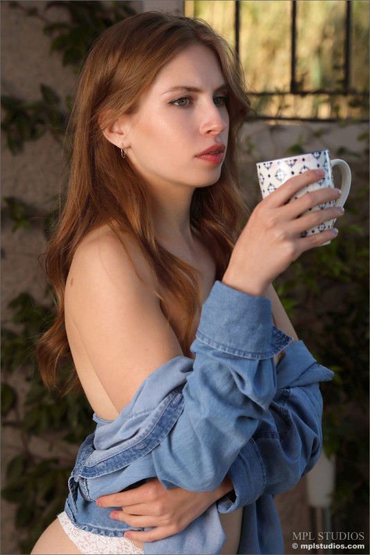 Медленно оголив под рубашкой свои нежные упругие титечки, сексуальная девица с аппетитной попкой игриво снимает с нее белые трусы и, широко раздвинув ноги на столе, во всей красе демонстрирует нам гладко выбритую промежность с красивой розовой писькой посередине.