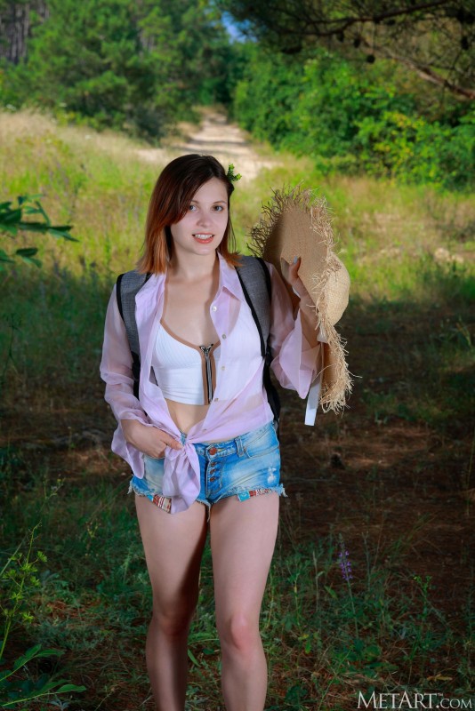 Устроив себе небольшой привал в лесу, длинноногая детка в коротких шортиках и майке медленно сняла с себя всю одежду и во всей красе оголила перед работающей камерой свою крепкую задницу с упругие буфера, а затем развратно изгибается на земле в разных позах, светя между ног сочной киской с прической на лобке.