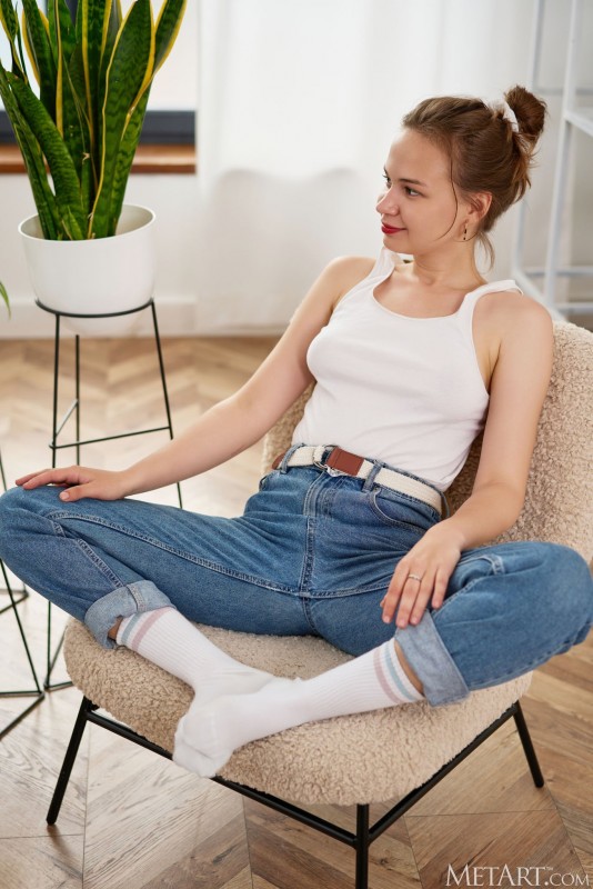 Возбуждающе медленно сняв с себя всю одежду и во всей красе демонстрируя на камеру свои прелести, молодая детка с упругими сиськами засветила темную бритую промежность и, лежа на диване с раздвинутыми ногами, приглашает нас полюбоваться своей нежной писькой и сжатым очком.