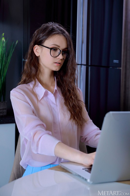 Эротично позируя перед камерой на стуле с бесстыже задирая на себе короткую юбку, развратная девушка засветила белые трусики и маленькую упругую попочку. Медленно снимая с себя одежду, худенькая красавица демонстрирует нам не только свои скромные маленькие тити, но и во всех подробностях раскрывает между ног большую бритую пизду.