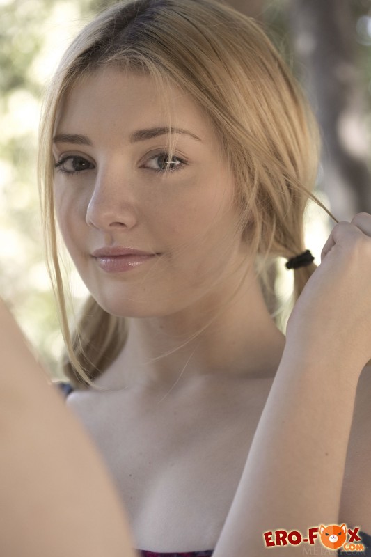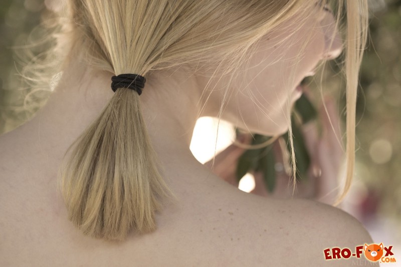 Молодая, но достаточно зрелая и при этом очень соблазнительная девушка 20 лет, расположившись под деревом рядом с лавочкой, начала эротично раздеваться, желая продемонстрировать нам красивую попу, с прекрасными упругими ягодицами. Полностью оголившись, очаровательная красавица постаралась открыть нашему взору маленькую грудь и другие прелести, в процессе чередуя разные позы, в том числе вставая раком.