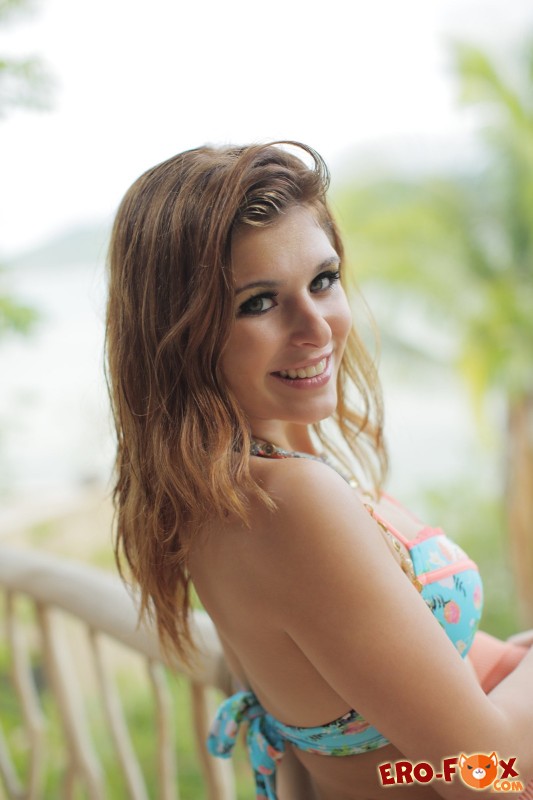 Раскрепощенная девушка позирует перед фото камерой и забыв о скромности она засунула два пальца в упругую попу. А началось всё с того, что красотка сняла трусики с лифчиком, после чего принялась ласкать своё обнажённое тело, задерживая игривые пальчики на бритой киске.