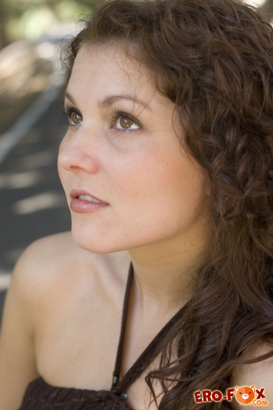 Оказавшись на безлюдной дороге, очаровательная кучерявая шатенка в платье не выдержала и принялась позировать, в процессе медленно раздеваясь. Уже спустя несколько минут молоденькая девушка демонстрирует упругие сиськи и сочную попочку, а ложась на асфальт и раздвигая промежность так же засвечивает бритую письку с волосатым лобком.