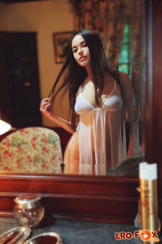 Эротика » Голые письки » Симпатичная азиатка в белом пеньюаре в спальне