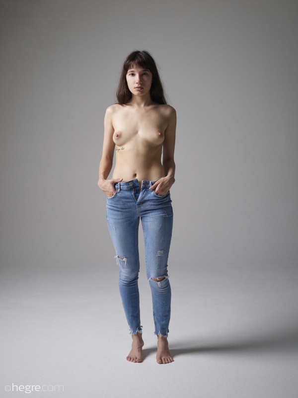 Эротика » Голые письки » Без лифчика стягивает джинсы