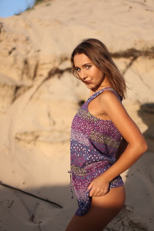 Безо всякой скромности и позабыв о приличиях, очаровательная девушка позирует на пляже перед камерой, в коротком сарафане без трусов и страстно прогибается раком, что бы показать нам бритую киску крупным планом. Наслаждаясь своим успехом, стройняшка позволила гам разглядеть ещё и упругую попку с небольшой грудью.
