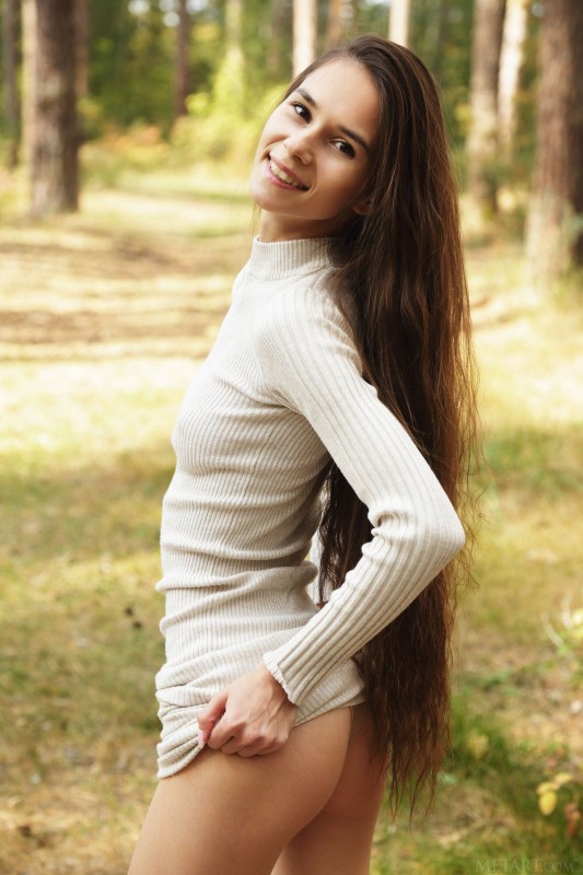 Необыкновенной красоты девушка, привлекательная худышка со смазливым личиком отправилась в лес на пикник, где ей захотелось немного пощекотать свои нервы и устроить эротический показ. Обаятельная красавица задрала платье выше маленькой груди, встала раком на постеленное на земле покрывало и спустила бежевые трусики стринги, предоставив нам на обозрение свою сладкую киску с тощей, но очень возбуждающей попкой.