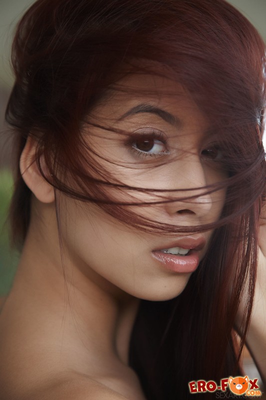 Голая рыжая азиатка с пышной грудью