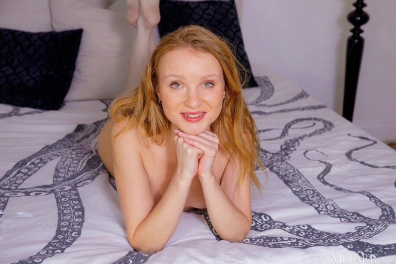 Бесстыже раздвигая перед камерой свои худые длинные ноги, рыжая телка в коротком пеньюаре без трусиков светит бритой губастой писькой. Постепенно оголив свое стройное тело и забравшись на кровать, нетерпеливо выпячивает как можно ближе к нам свою раскрытую промежность с гостеприимной розовой дырочкой.