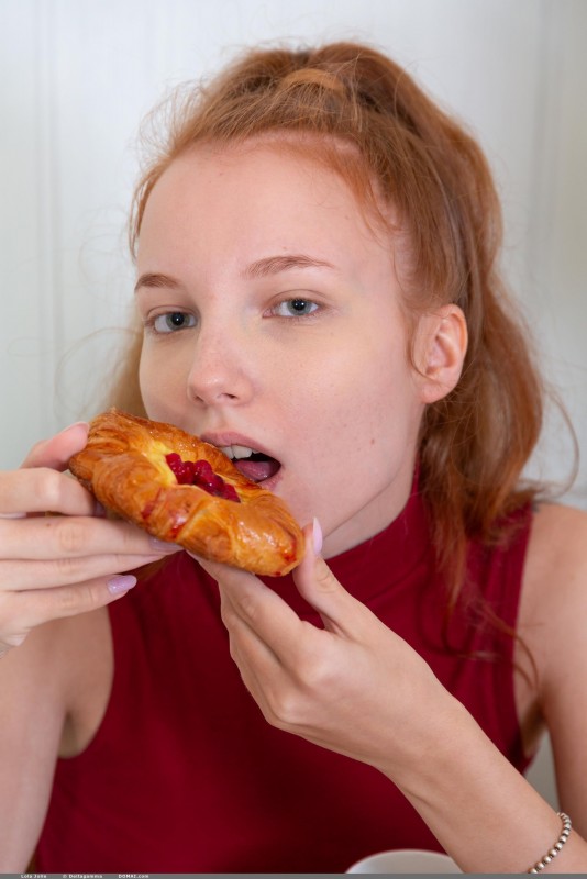 Кокетливо позируя и одновременно раздеваясь на кухне перед камерой, молодая рыжая простушка бесстыже показала нам свои плоские сиськи и, кокетливо виляя своей голой натуральной попкой, до последнего кадра интригующе скрывает от нам свою маленькую бритую писю между сжатыми бёдрами.