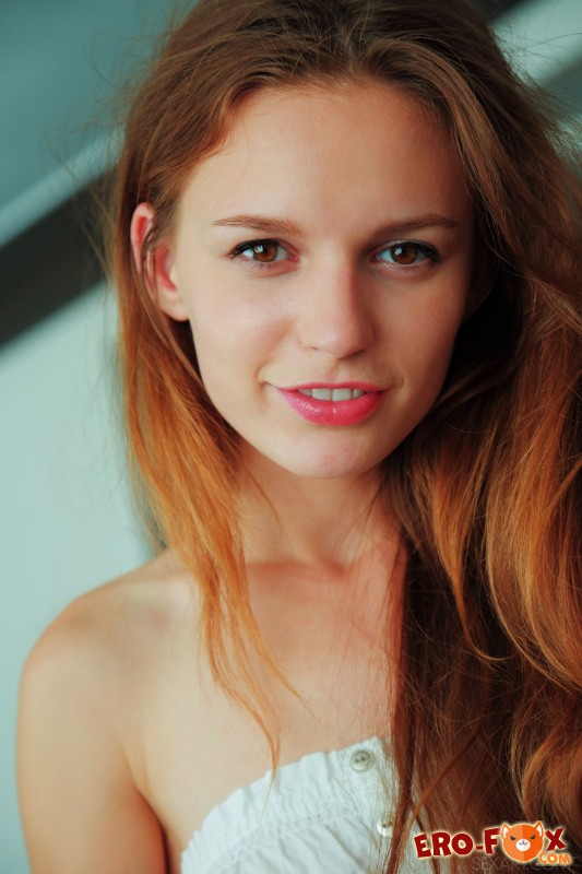 Рыжеволосая девушка в юбке и блузке без рукавов, начала медленно раздеваться. Устроившись в кресле красотка засветила сексуальное тело, параллельно эротично позируя, поворачиваясь попкой и волосатой киской. В будущем ей так же удалось сделать акцент на маленьких сиськах.
