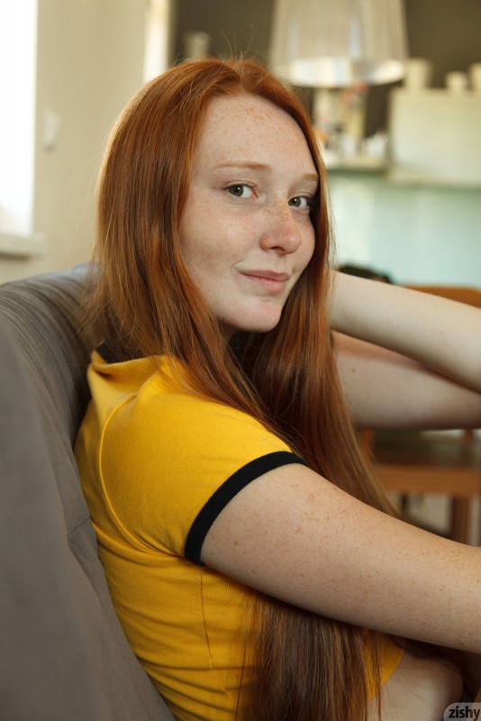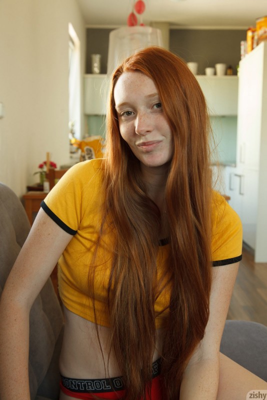 Устроив дома откровенную фото съёмку, рыжая тёлка с незаурядной внешностью с энтузиазмом позирует в стрингах и черных гольфах с футболкой, скрупулёзно меняя позы, а в будущем располагаясь на диване. Кокетливо обнажаясь перед камерой, модель показала большую жопу и аппетитные сиськи внушительного размера и аккуратной формы.