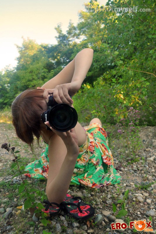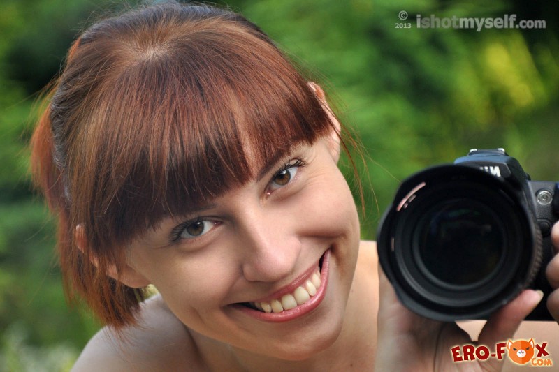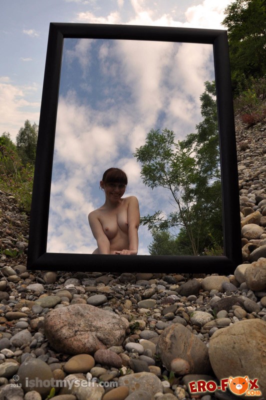 Забавная рыжая девушка выбралась на природу с фотоаппаратом и голая устроившись перед зеркалом принялась снимать себя в откровенных позах. Развратнице удалось запечатлеть свою маленькую грудь, красивую бритую киску и попку, всё это она выложила в интернет на всеобщее обозрение.