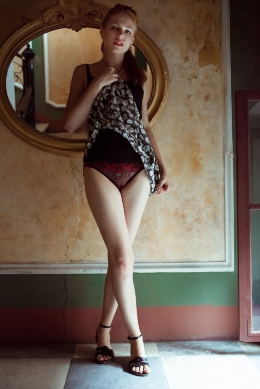 Рыженькая позирует в нижнем белье