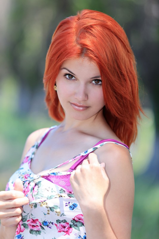 Подобрав на просёлочной дороге попутчицу, водитель согласился довезти её, но при одном условии - красотка должна была раздеться перед его фотокамерой и голая позировать в откровенных позах. Рыжую девушку совершенно не смутил этот факт и очень скоро она уже демонстрировала свои небольшие титьки, бритую письку и аппетитную задницу.