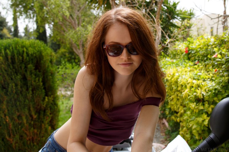 Сексапильная рыжая девушка с маленькой грудью решила раздеться перед фото камерой жарким солнечным днём. Первым делом рыжая красавица задрала майку и показала свою маленькую грудь, наверное, нулевого размера. Затем милашка стянула джинсовые шортики и пред нами предстала её соблазнительная бритая киска, на которую невозможно смотреть без дикого желания вставить в неё свой "жезл"... В итоге модель полностью разделась и мы смогли по достоинству оценить её голое тело, разглядеть все её прелести и насладиться каждой фотографией, за что нужно сказать - спасибо, этой чертовке...