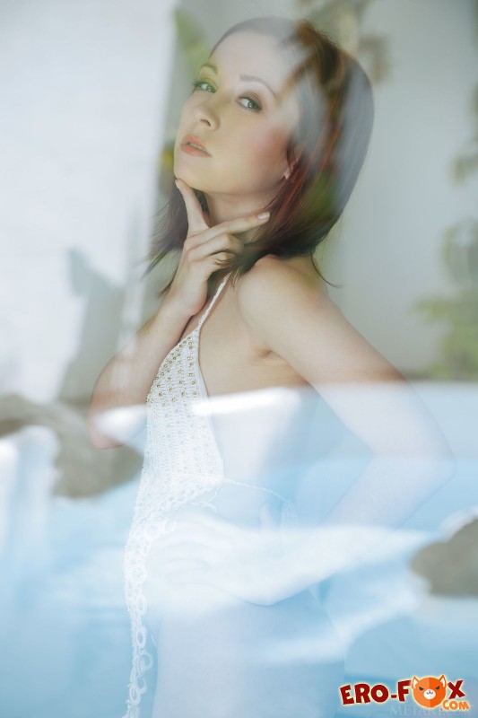 Очаровательная рыжая красотка с худеньким телом позирует перед камерой без трусов. Сперва красавица демонстрировала нам свою маленькую грудь, а затем встала раком попкой к камере, что бы мы могли насладиться шикарным видом её гладкой как шёлк попки и соблазнительной киски.