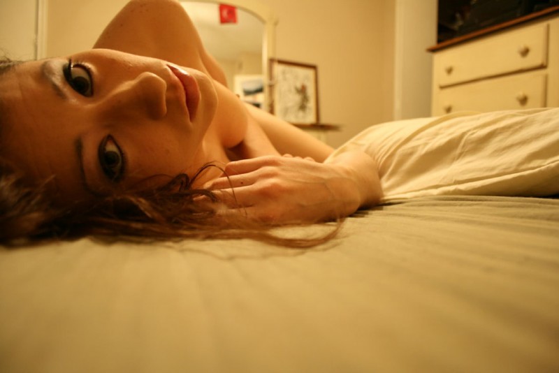 Закрывшись дома в спальне и поставив перед собой на кровати камеру, сексуальная красотка с милой внешностью начинает эротично позировать в чулках и трусах. В дальнейшем, располагаясь в постели, обаятельная стройняшка раздевается догола и порой немного засвечивает попочку с маленькими сиськами.