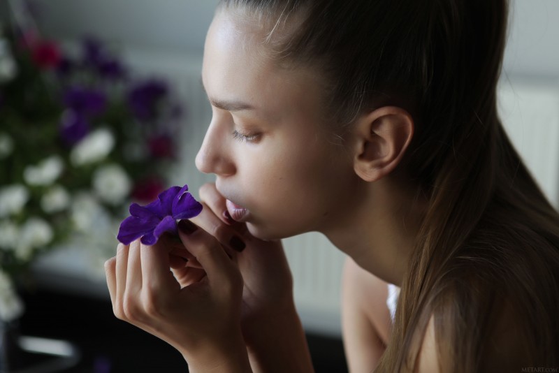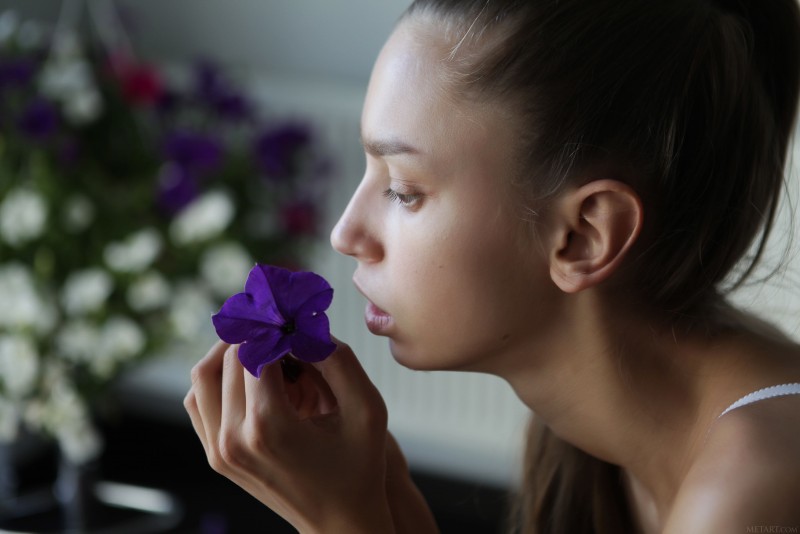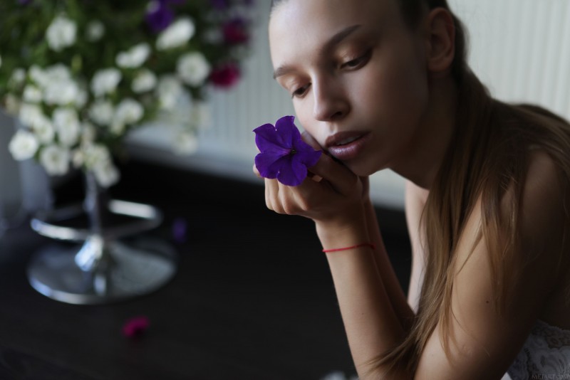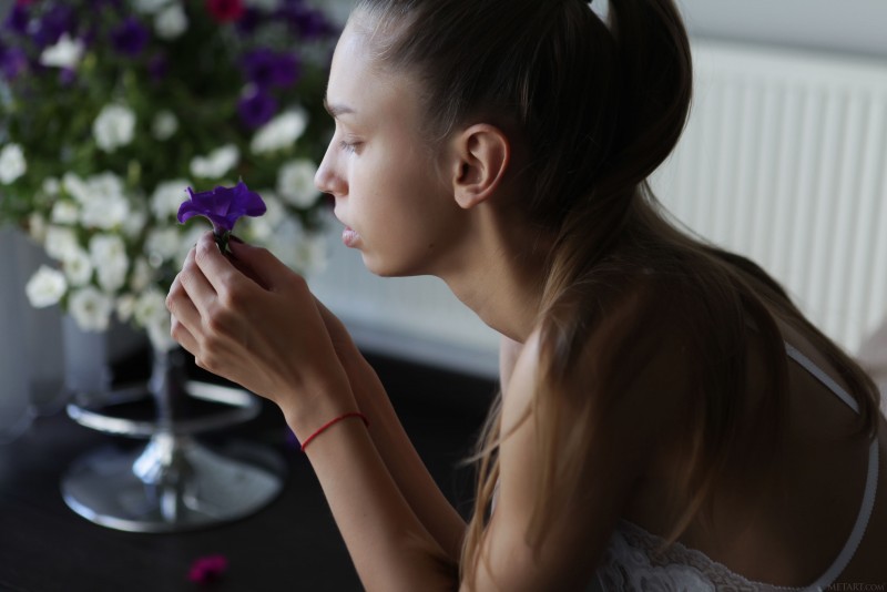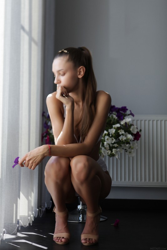 Привлекательная тощая модель в белом кружевном белье грациозно меняет соблазнительные позы в спальне у окна и выпячивает свои прелести, порой поворачиваясь к камере попкой. Наслаждаясь любимым делом, шалунья в процессе присаживалась на пол и стягивая лифчик акцентировала внимание на натуральных сиськах с торчащими сосочками.